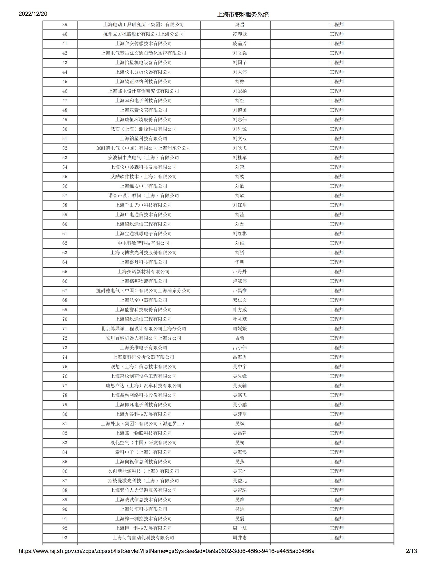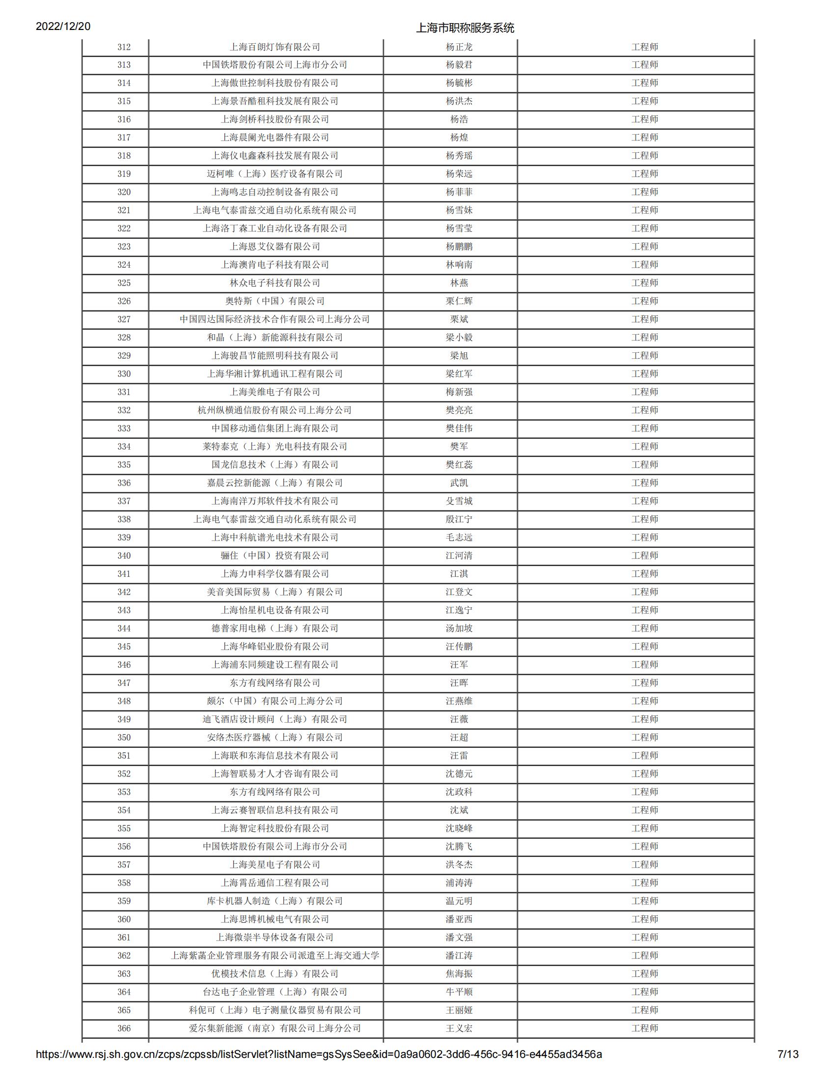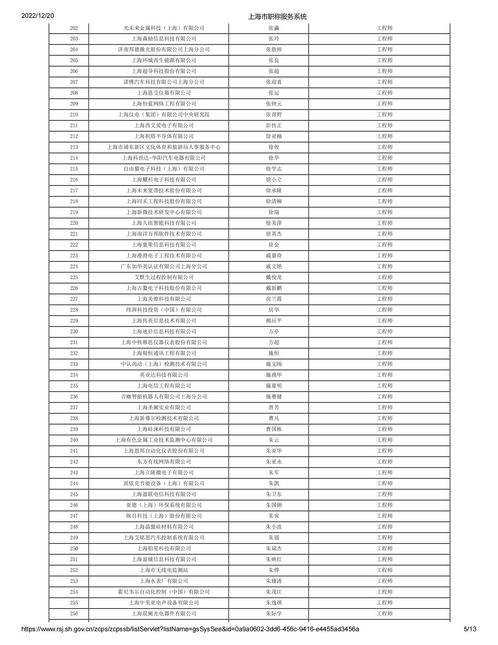 2022年度上海市工程系列計算機與數字技術專業中級職稱評審委員會(浦東新區)評審通過人員名單公示