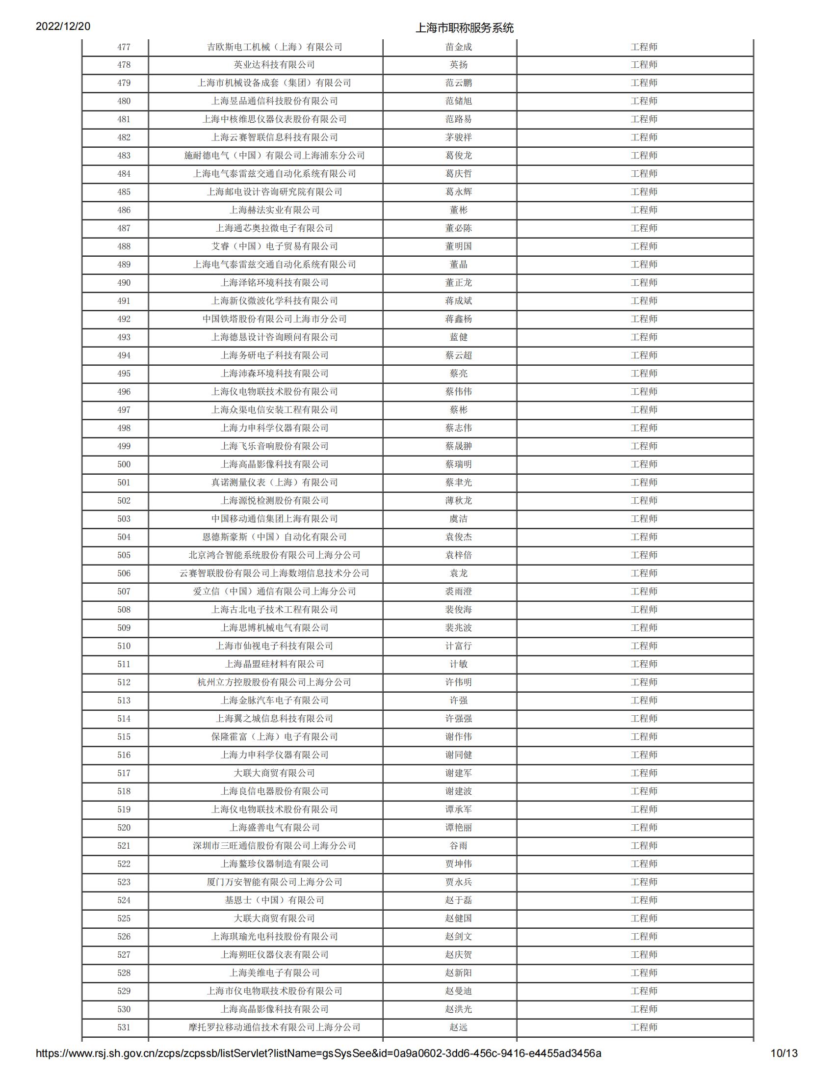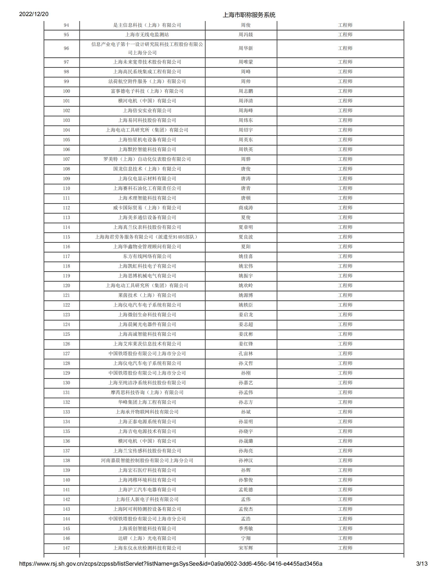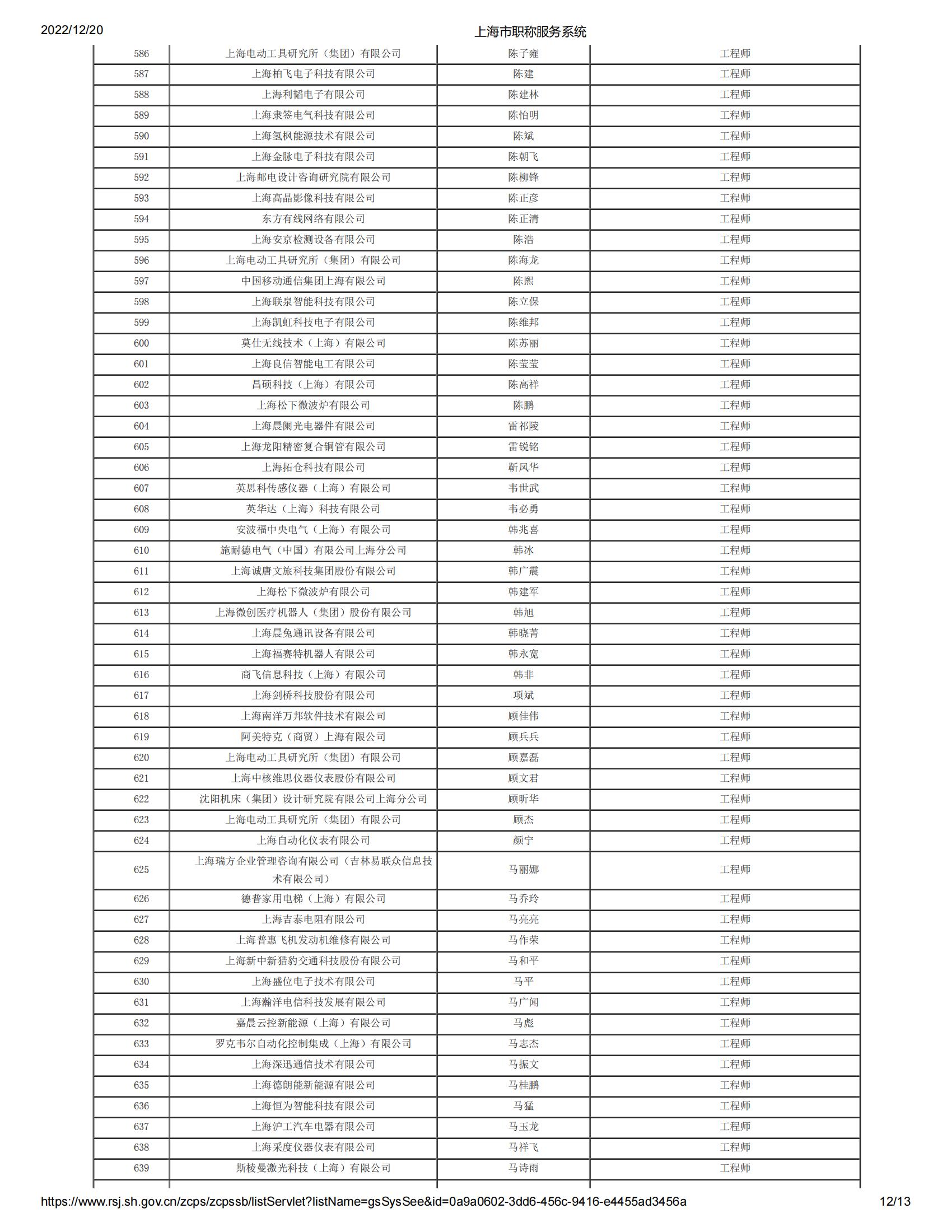 2022年度上海市工程系列計算機與數字技術專業中級職稱評審委員會(浦東新區)評審通過人員名單公示