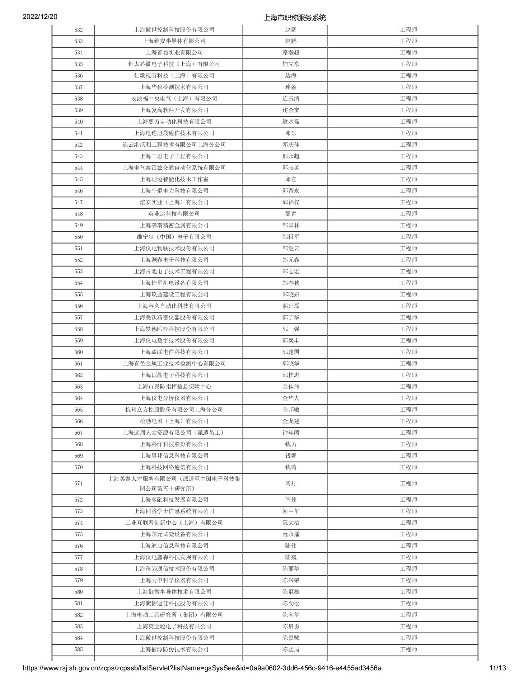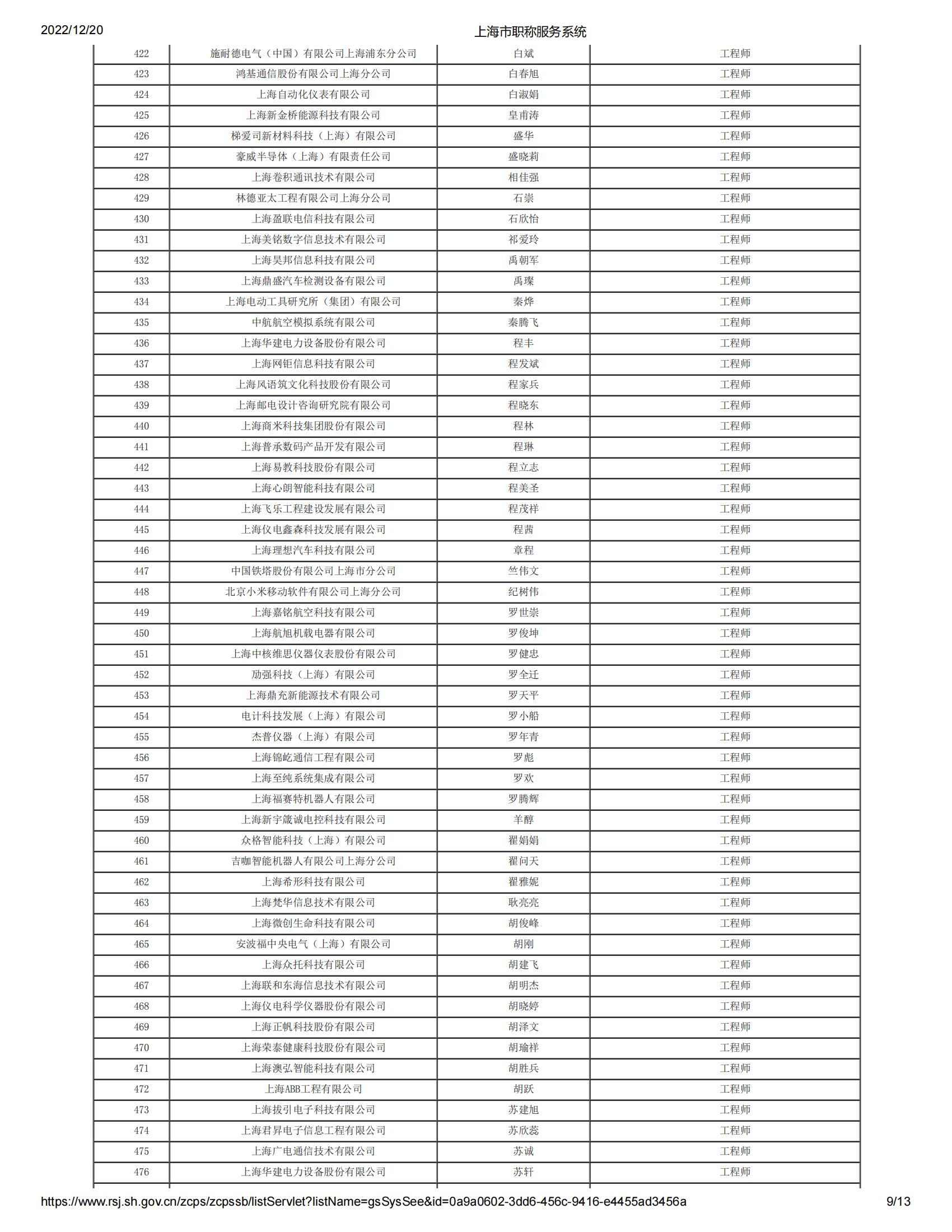 2022年度上海市工程系列計算機技術及應用專業高級職稱評審委員會評審通過人員名單公示